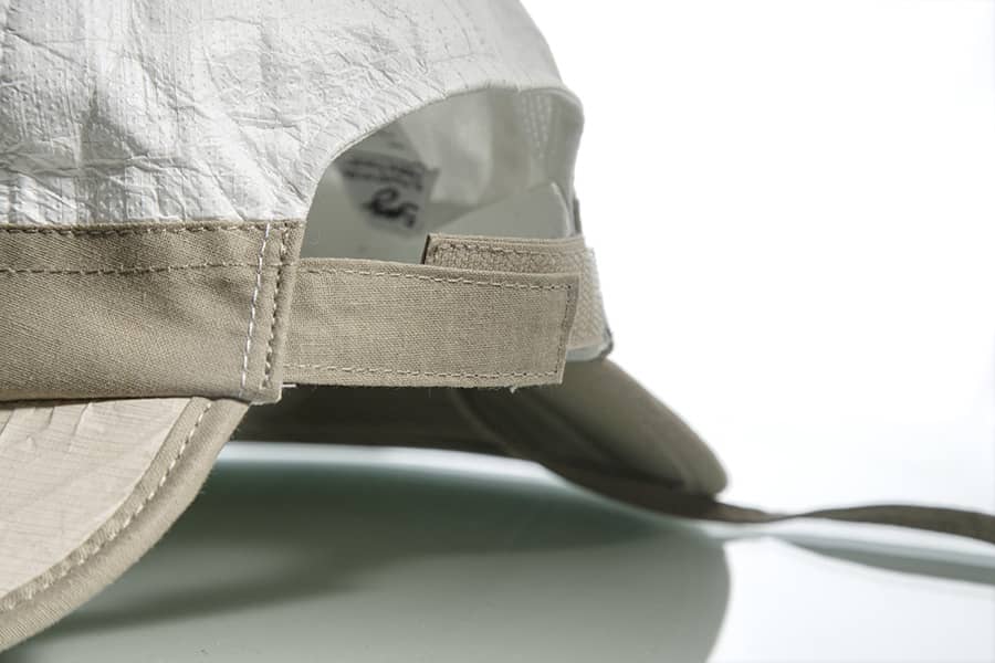 Lien anti-vent avec petite pince pour attacher la casquette au vêtement.